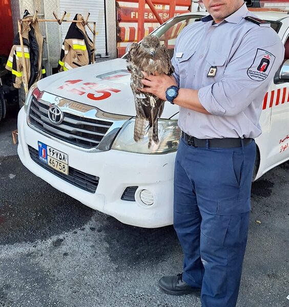 زنده گیری عقاب توسط آتش نشانان اهوازی و بازگرداندن آن به طبیعت