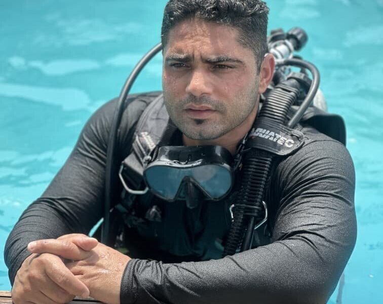بله، دقیقا. من حدود ۱۲ سال است که غواصی انجام می‌دهم. اهل دزفولم و به تدریج به غواصی علاقه‌مند شدم دوره‌های غواصی را گذراندم، و الان کار آموزش غواصی را در جزیره کیش انجام می‌دهم. چند سال پیش با چند نفر از دوستان و شاگردانم در زمان‌هایی که هوای کیش بسیار گرم می‌شد، در شهر خودمان دزفول، غواصی می‌کردیم؛ رطوبت کیش در برخی ماه‌های سال بسیار وحشتناک است. ما به رودخانه‌های محلی مانند «چالکندی» و «دز» می‌رفتیم و به صورت تفریحی غواصی می‌کردیم.